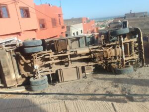 إنقلاب شاحنة للنفايات بحي تيفريت في بني ملال