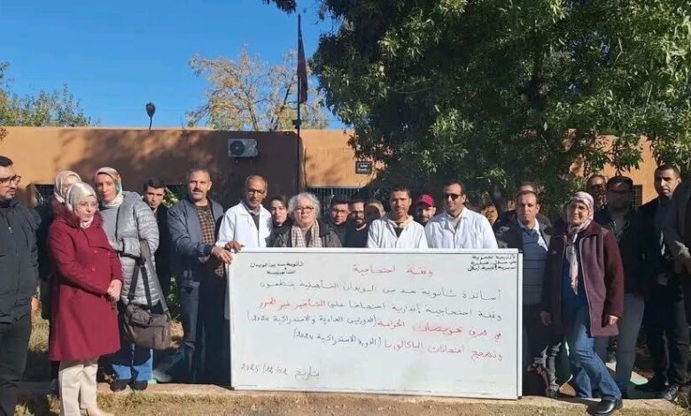 وقفة إنذارية لأساتذة ثانوية نواحي بني ملال احتجاجاً على تأخر صرف مستحقات امتحانات البكالوريا